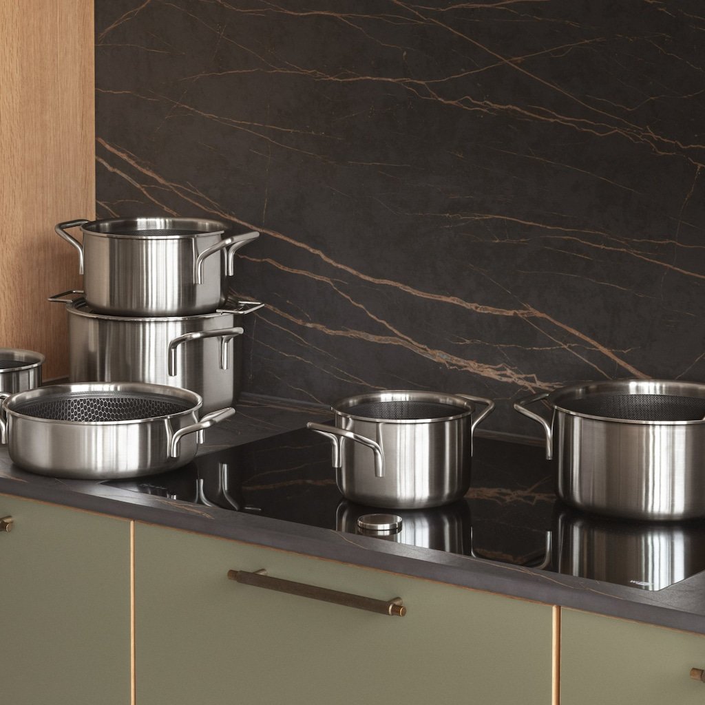 - o corpo da panela é fabricado com 85-90% de aço inoxidável reciclado e 100% de alumínio reciclado para uma produção mais sustentável