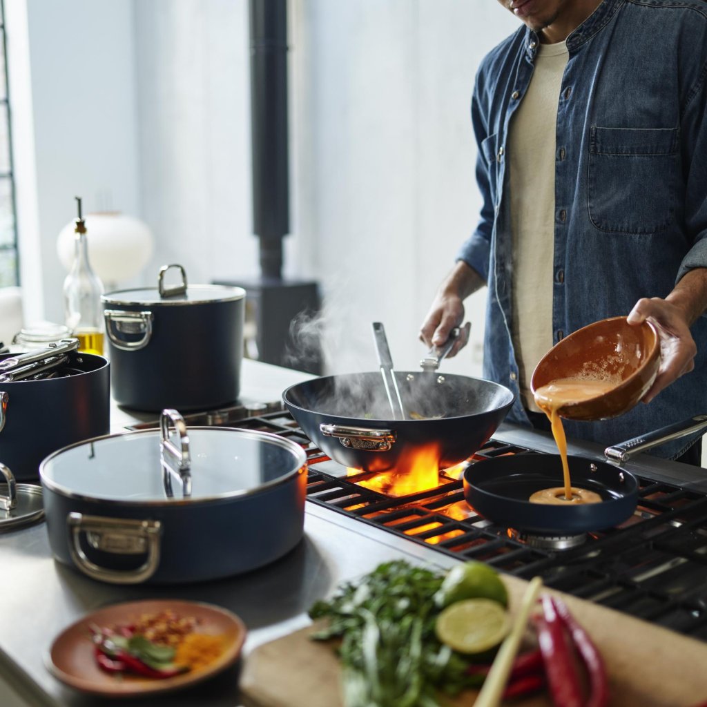 - O acabamento da superfície não contém PTFE, PFAS, PFOA, chumbo ou cádmio, sendo, portanto, adequado para o cozimento diário com ênfase na segurança.