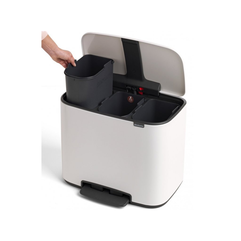 Caixote do lixo com pedal BO 3 x 11 l, branco, Brabantia