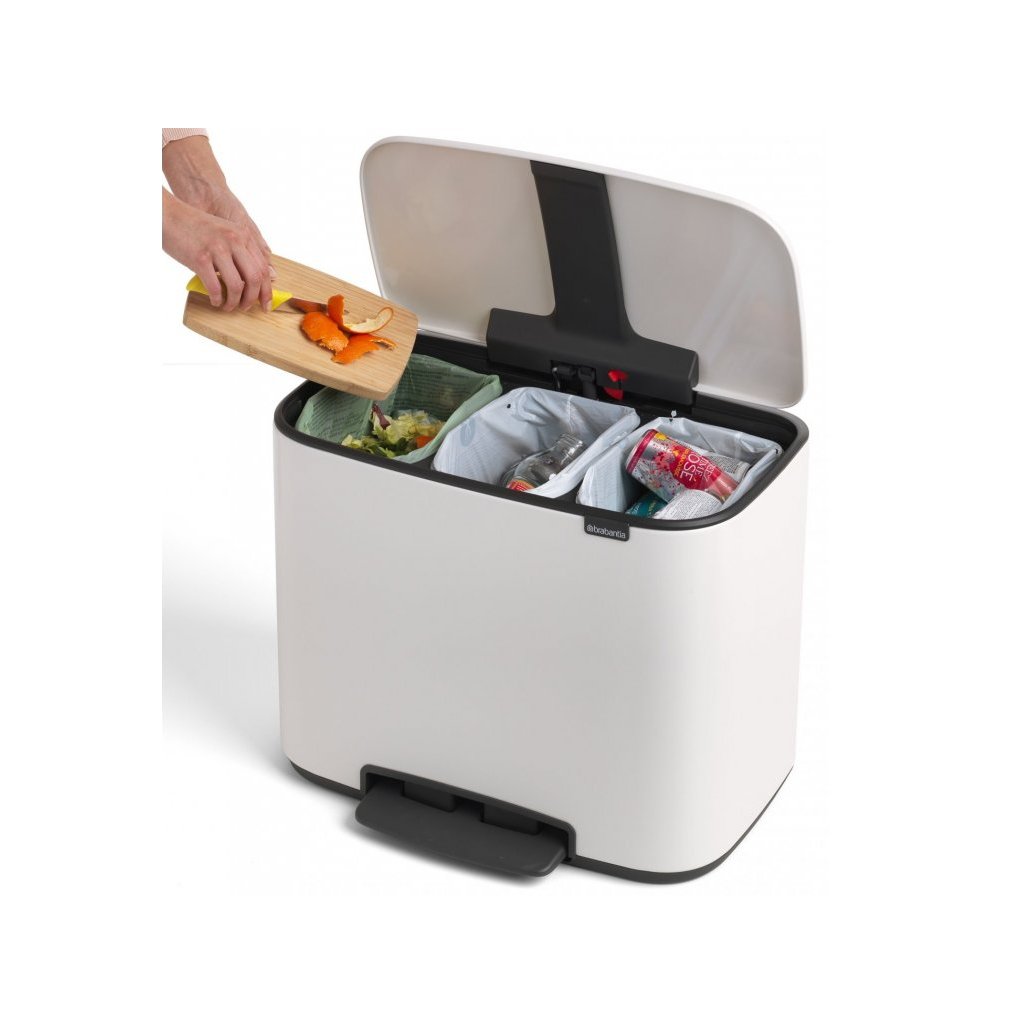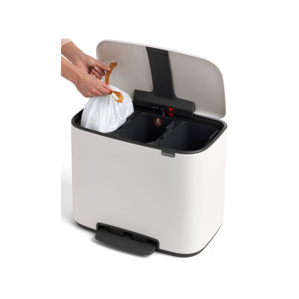 - Inclui sacos especiais adequados apenas para o contentor do lixo BO - a extremidade do saco fica escondida sob a tampa do contentor