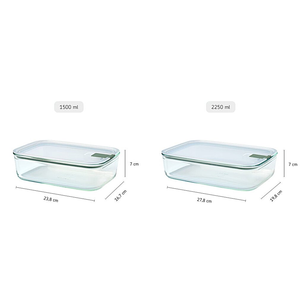 - vidro pote hermético Mepal EASYCLIP com volume de 1500 ml é ideal para preparar, armazenar e servir refeições em um único recipiente