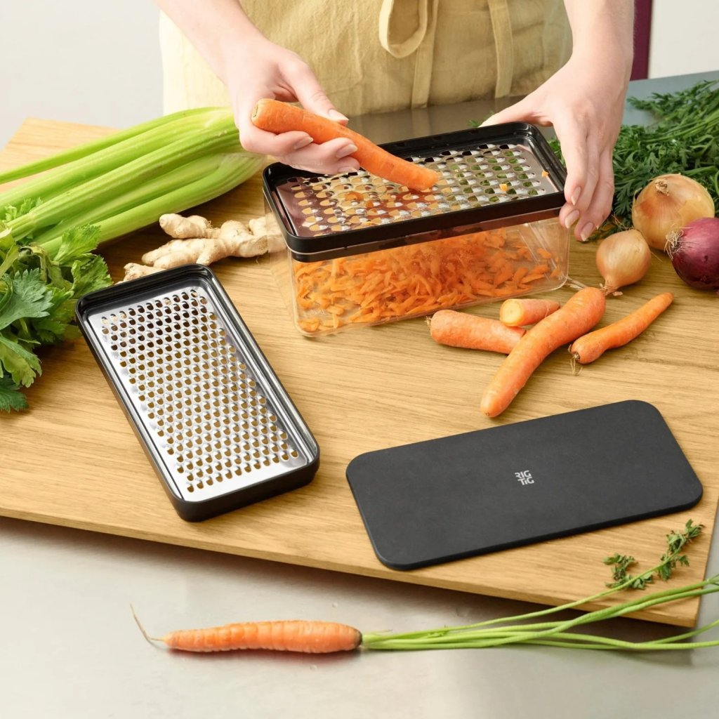 - O prático ralador 4 faces GRATE-IT é um ajudante de cozinha inteligente que combina as funções de um ralador e de um recipiente de armazenamento