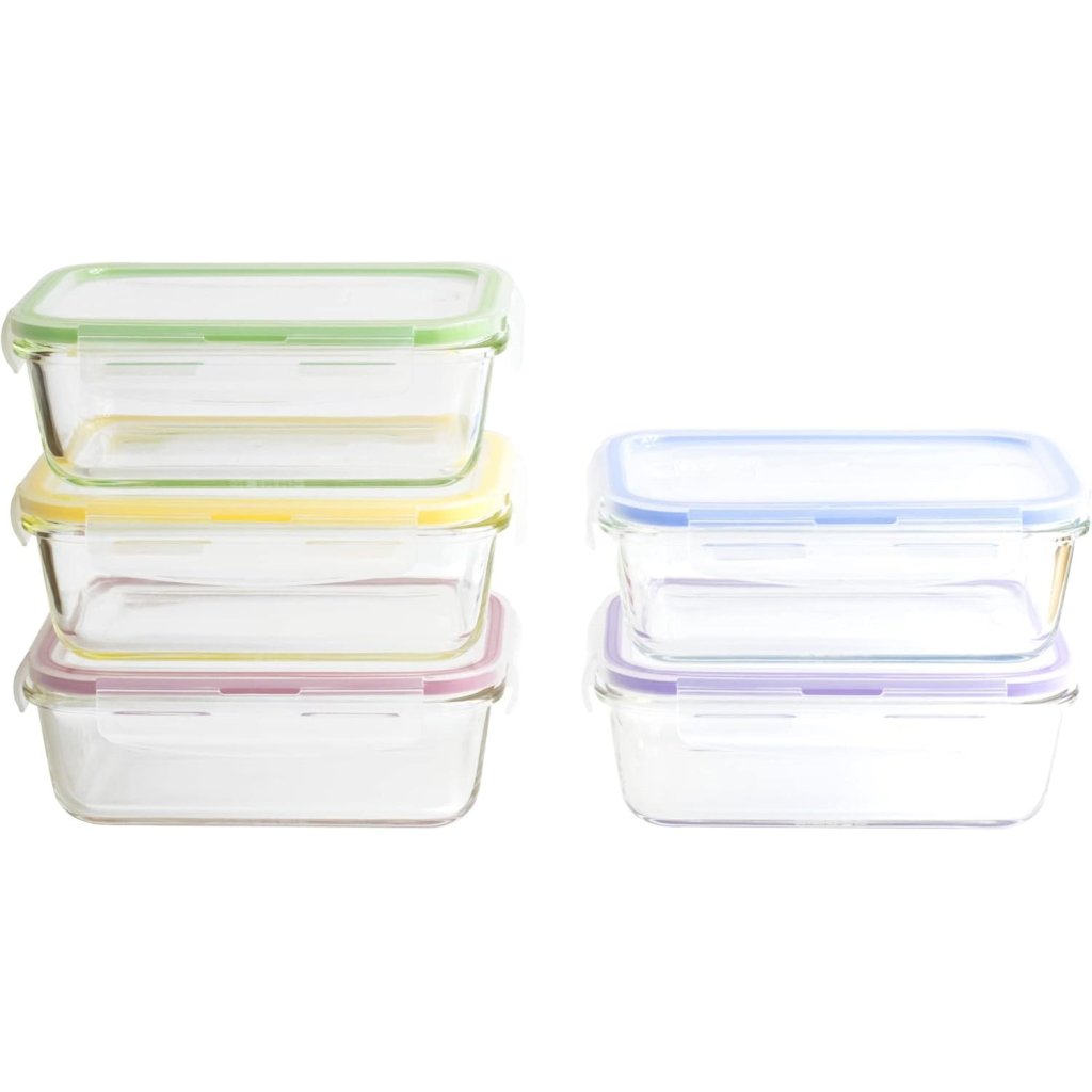 Recipiente para alimentos PKV-5SRB 850 ml, conjunto de 5 unidades, vidro / plástico, Pebbly