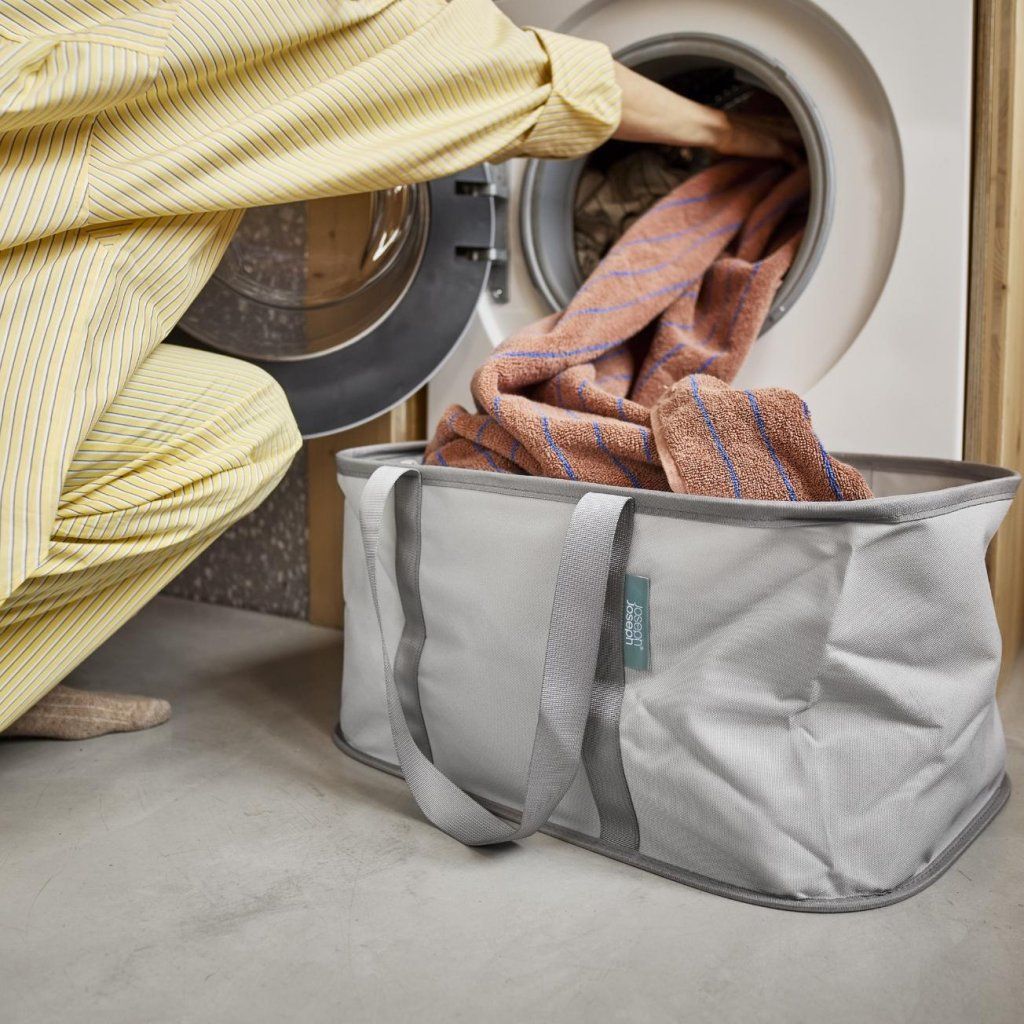 - O design minimalista em cinzento com o discreto logótipo Joseph Joseph integra-se facilmente na casa de banho, quarto ou área de serviço moderna.