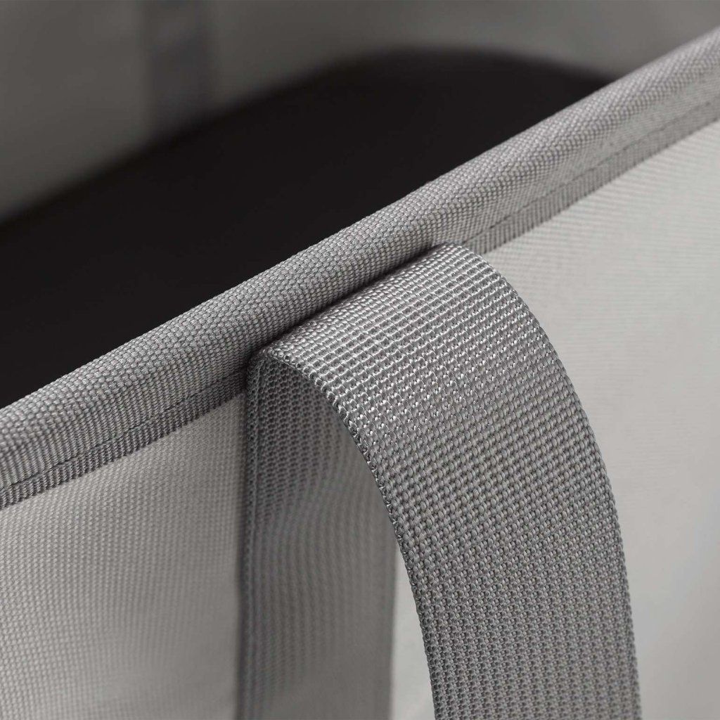 - As pegas fortes e firmemente costuradas permitem transportar confortavelmente o cesto, mesmo quando cheio, com uma só mão entre a casa de banho, o quarto e a máquina de lavar.