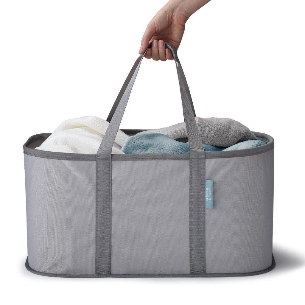 - Sacola de lavanderia Joseph Joseph DUO com capacidade de 35 litros é uma solução prática e elegante para a recolha diária de roupa suja e organização da casa, sem ocupar espaço desnecessário.