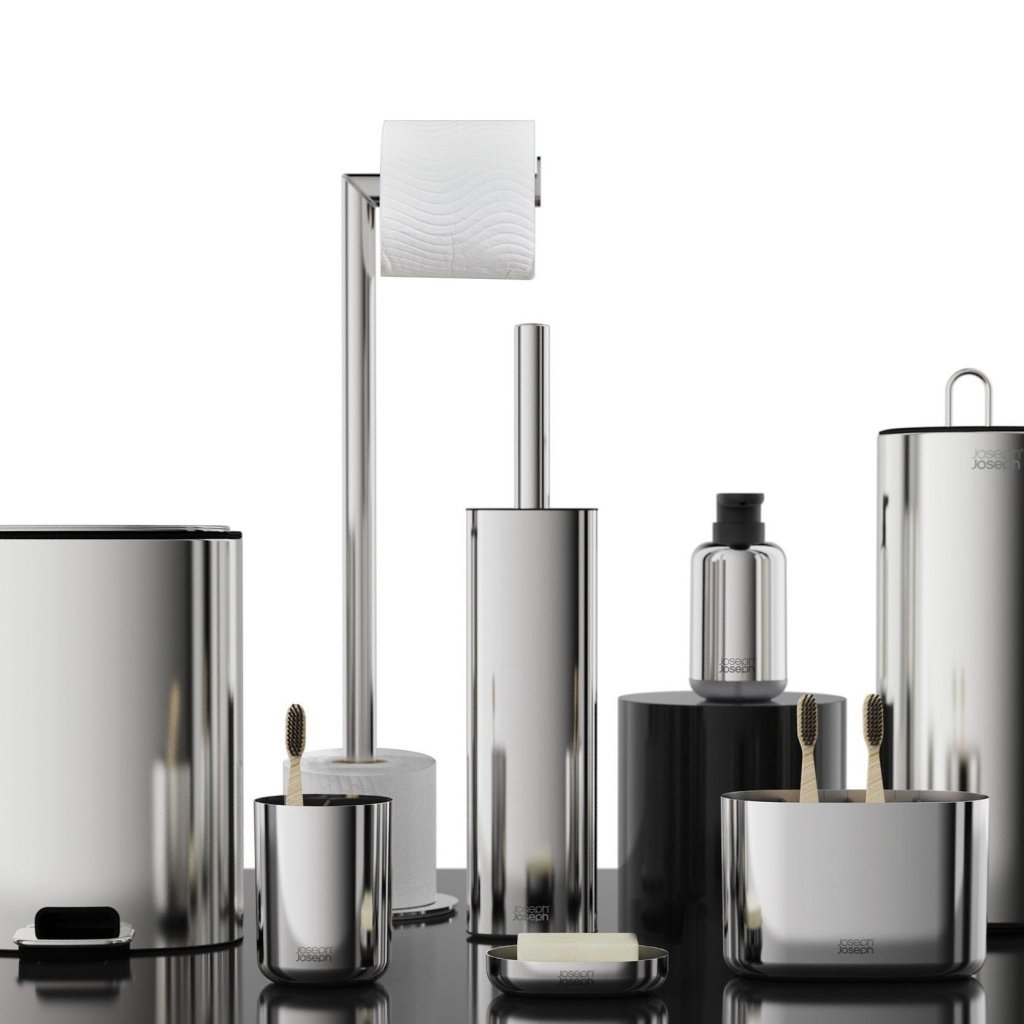 - O Suporte para rolo de reserva de papel higiênico Joseph Joseph EASYSTORE LUXE oferece uma solução elegante e higiénica para guardar rolos na casa de banho, ajudando a manter o espaço organizado e visualmente limpo.