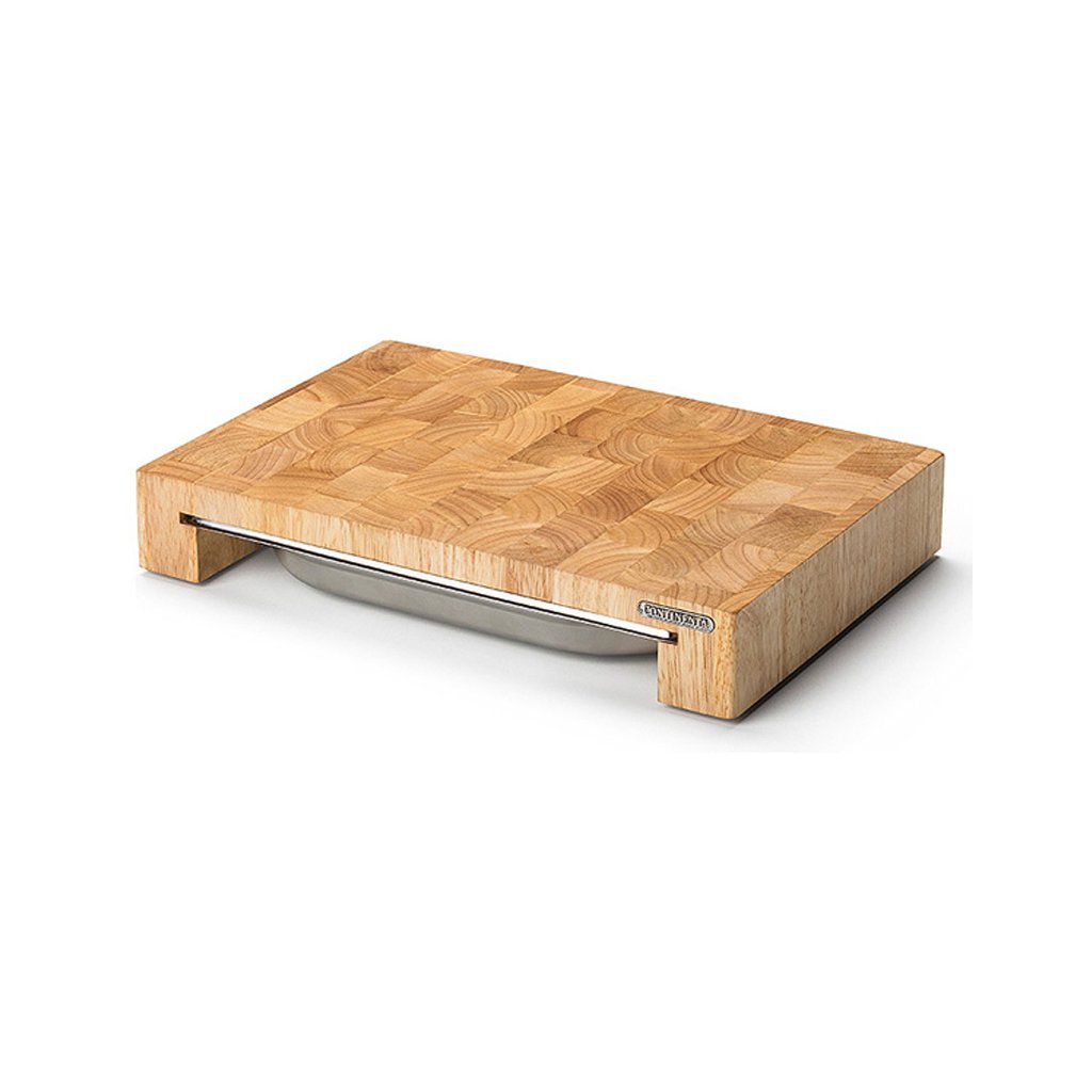 A tábua de corte Continenta , com um design sofisticado e intemporal, é mais suave para as facas graças ao seu material natural, pelo que as lâminas quase não ficam cegas. Os pés com borracha na parte inferior da placa garantem um trabalho seguro sem o risco de a placa escorregar. É feito a partir de um mosaico de blocos de madeira colados de goma de árvore prensada e é, portanto, 100% natural. A superfície oleada promove as propriedades antibacterianas da madeira e protege-a. O prato não pode ser lavado na máquina de lavar louça.