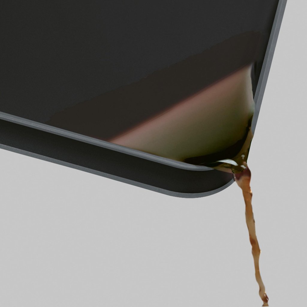 - A borda de drenagem integrada permite despejar convenientemente o líquido recolhido sem sujar a bancada.