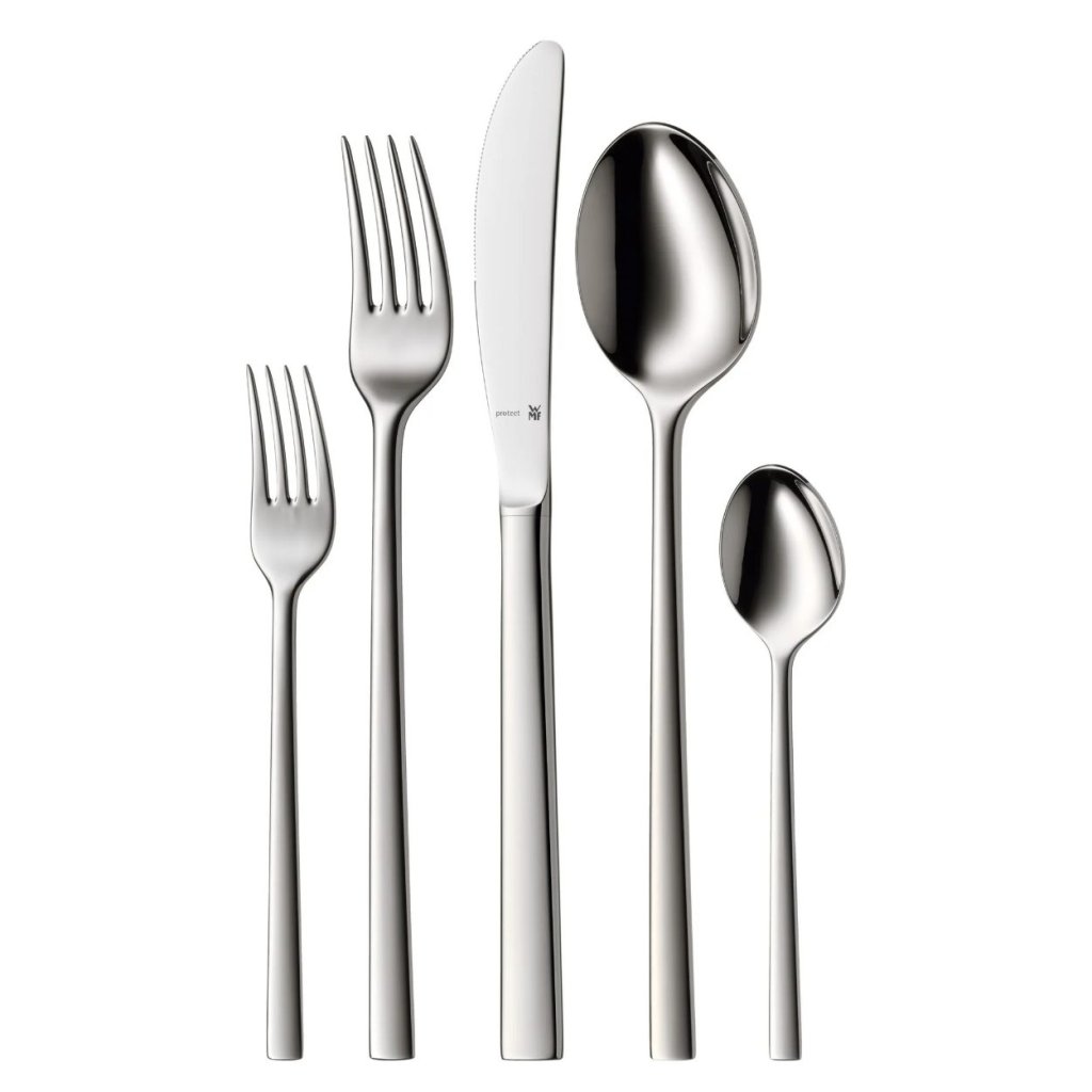 - o acabamento da superfície mantém o brilho nos talheres polidos e o aspeto mate nos talheres mate