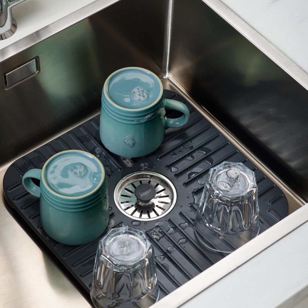 - A tapete protedor de pia de cozinha Joseph Joseph SINKSHIELD ajuda a proteger tanto a pia como a loiça durante a lavagem, criando ao mesmo tempo um espaço prático para escorrer diretamente dentro da pia.