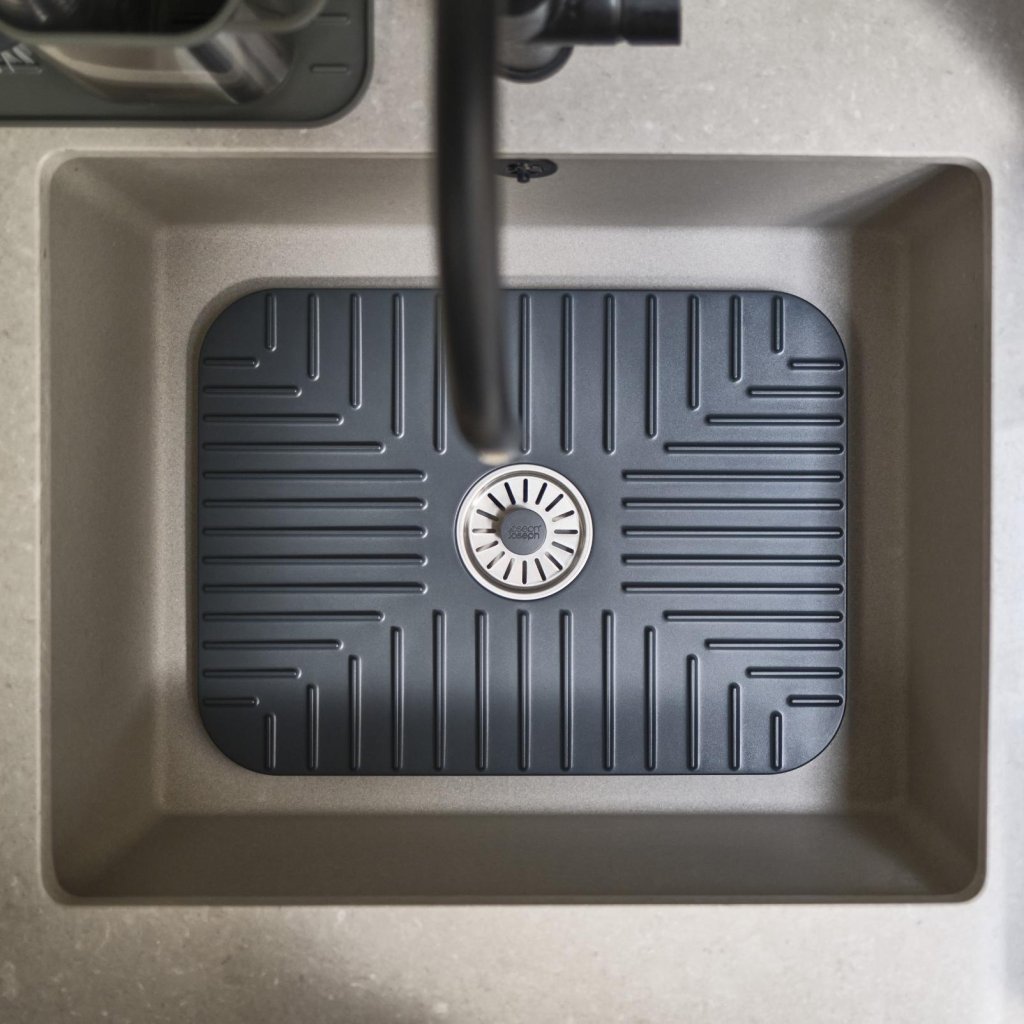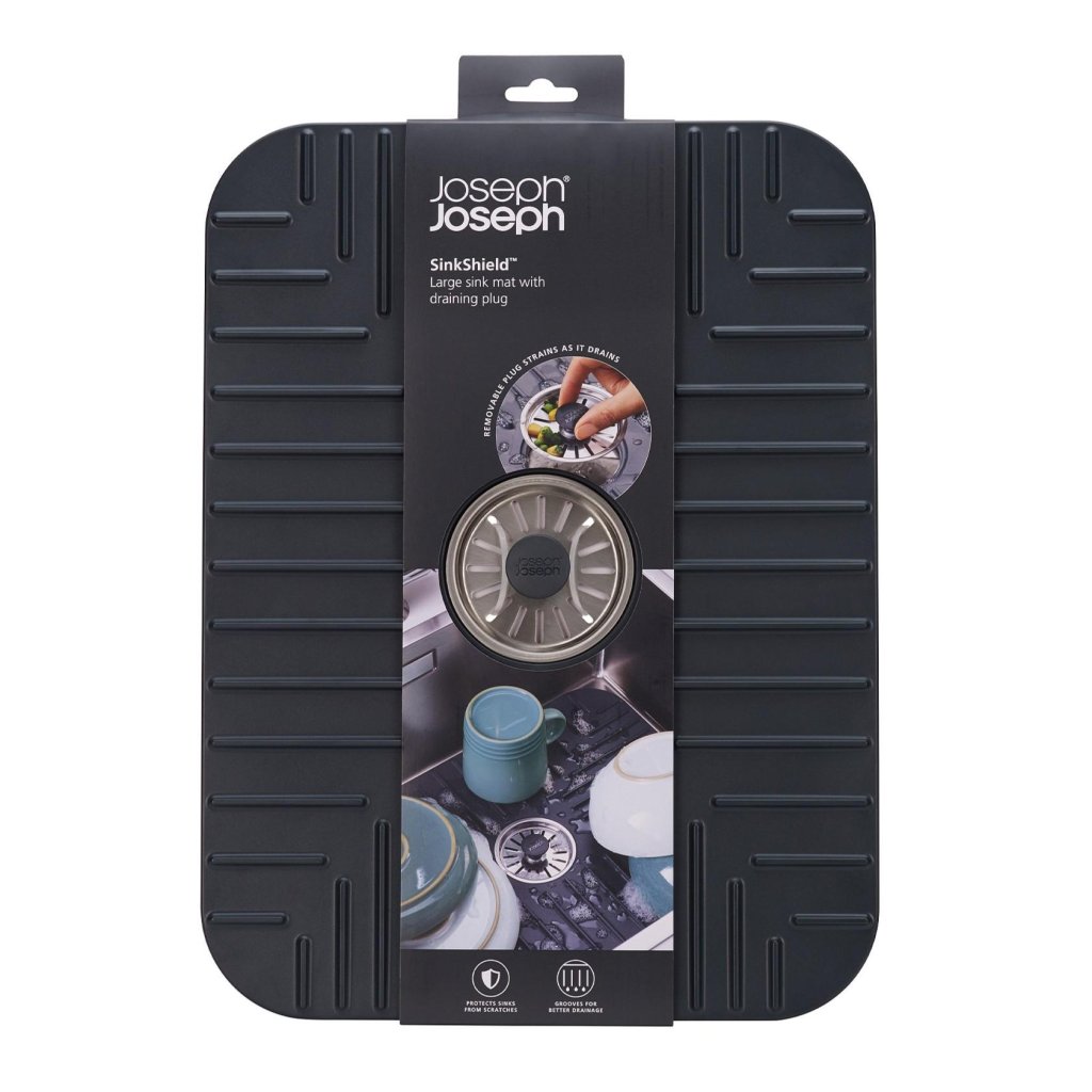 - A tapete protedor de pia de cozinha Joseph Joseph SINKSHIELD ajuda a proteger a pia e a loiça durante a lavagem, criando ao mesmo tempo um espaço prático de escoamento diretamente dentro da pia.