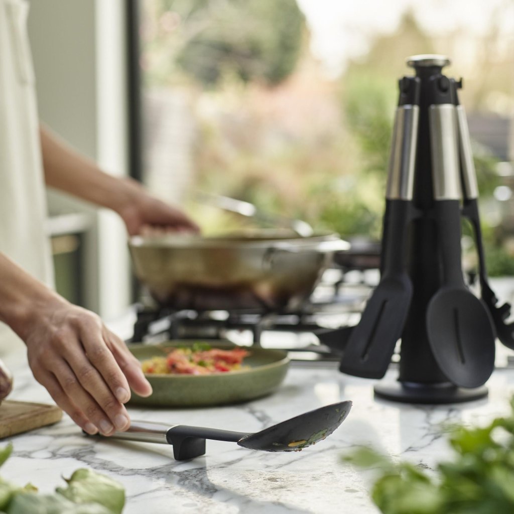 - Cada utensílio é projetado para uma tarefa específica, facilitando misturar, virar, servir ou pegar diferentes pratos.